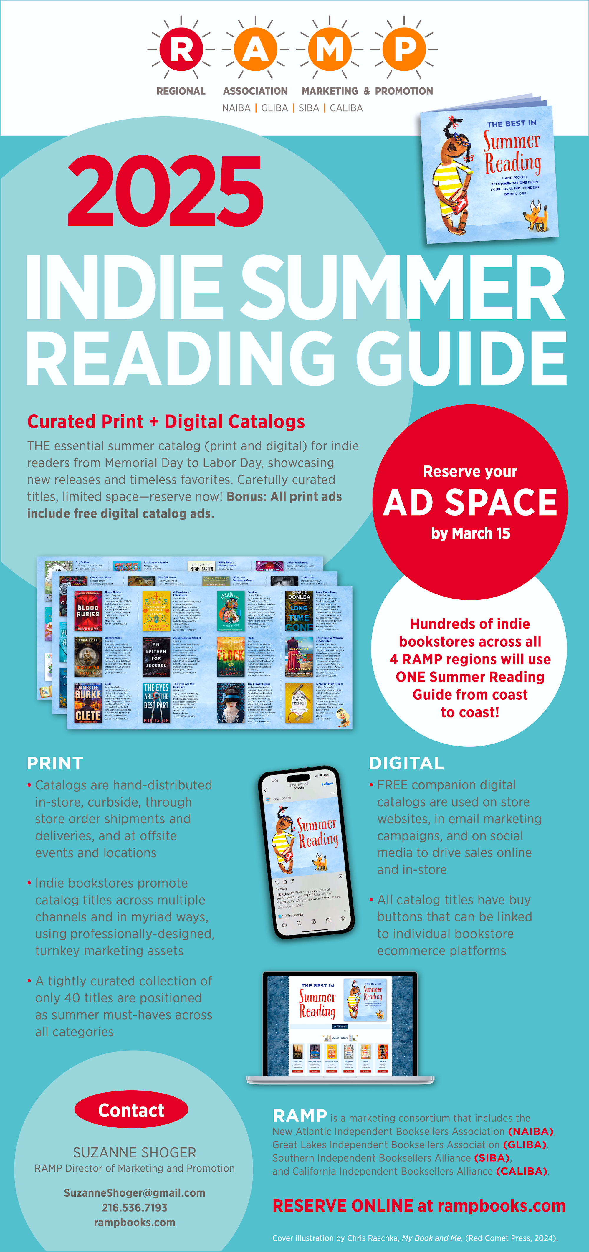 RAMP is a marketing consortium that includes the New Atlantic Independent Booksellers Association (NAIBA), the Great Lakes Independent Booksellers Association (GLIBA), the Southern Independent Booksellers Alliance (SIBA), and the California Independent Booksellers Alliance (CALIBA).
